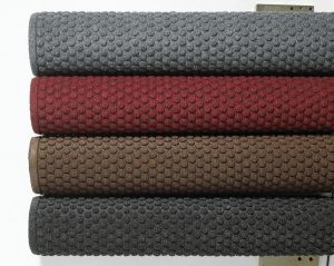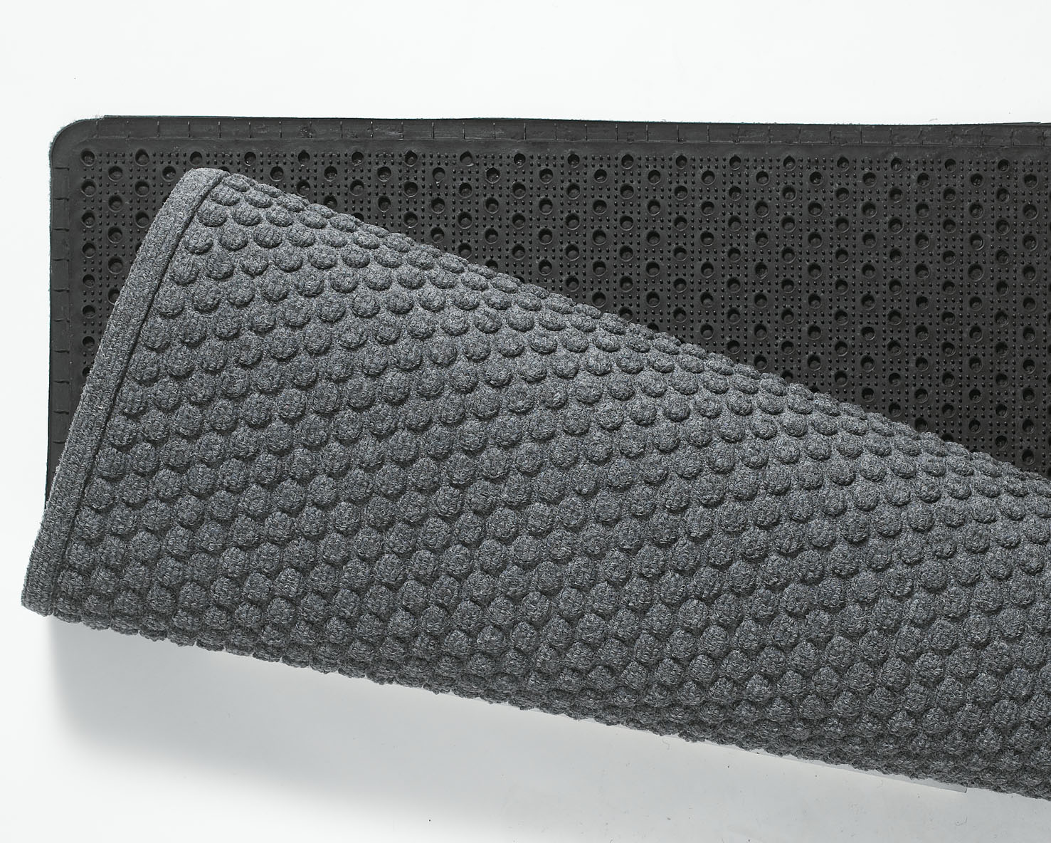 Tapete tipo alcatifa (formato bolas)com base em vinil anti-derrapanteFiel ao seu nome, a solução patenteada Aqua Dam